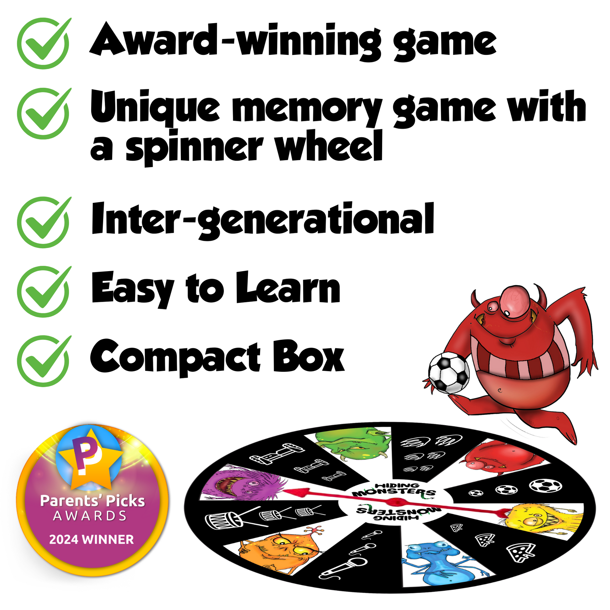 Hiding Monsters - Spin, Match, and Laugh with Hiding Monsters! Award-winning memory game for ages 6 and up. 2+ Players. 15 Minutes Average Gameplay.